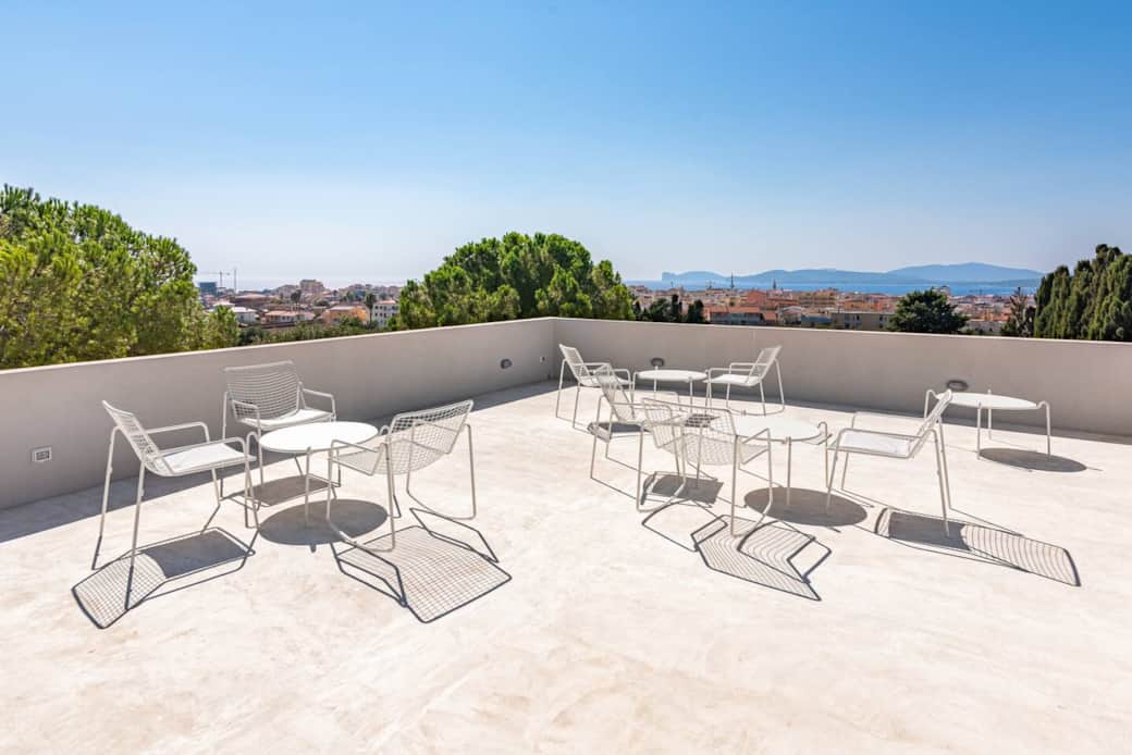 A shared rooftop terrace is also available for all guests, furnished with tables and armchairs — the perfect place to enjoy the view of Capo Caccia and the beautiful sunset.