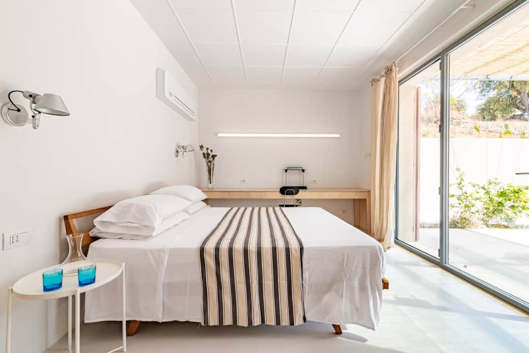 Casale Valverde is the result of a complex and careful restoration of a derelict farmhouse. After years of abandonment, exposed to weather, animals, and overgrowth, it has now been brought back to life. The restoration was led by a talented architect, my husband, who preserved the shape and the building character, while introducing a clean, modern, minimalist style.