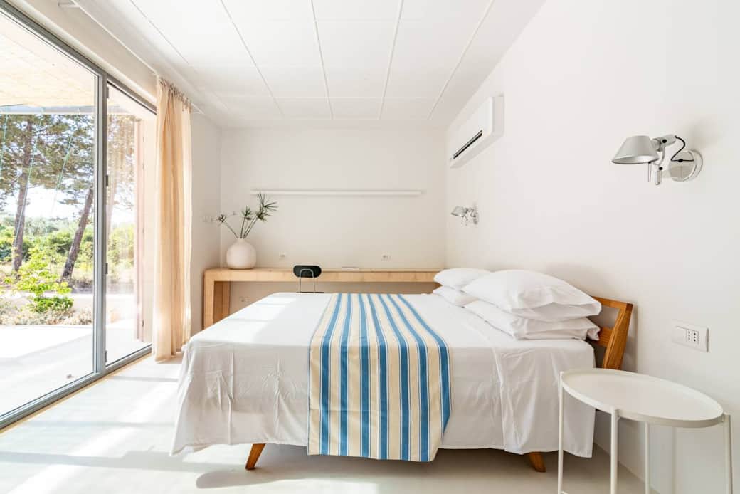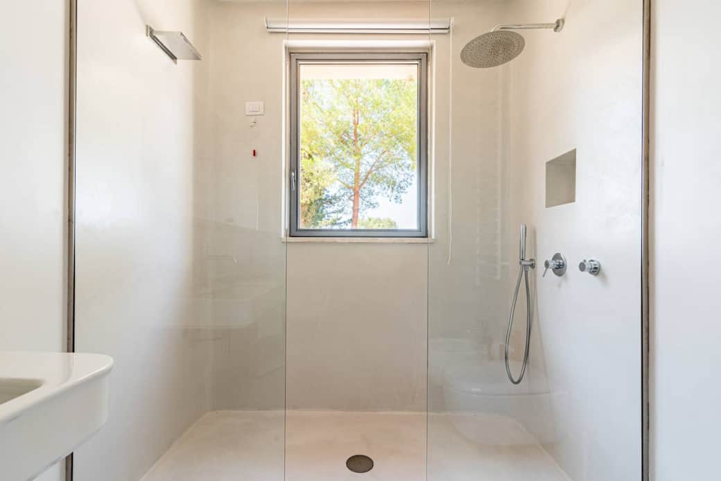 Casale Valverde is the result of a complex and careful restoration of a derelict farmhouse. After years of abandonment, exposed to weather, animals, and overgrowth, it has now been brought back to life. The restoration was led by a talented architect, my husband, who preserved the shape and the building character, while introducing a clean, modern, minimalist style.